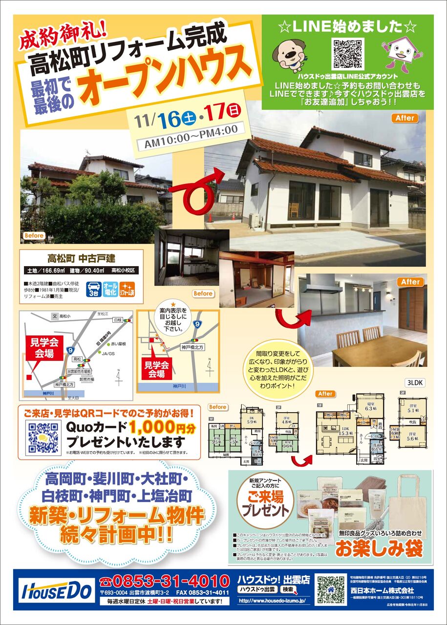 11/16(土)・17(日) 高松町リフォーム物件オープンハウス開催!!