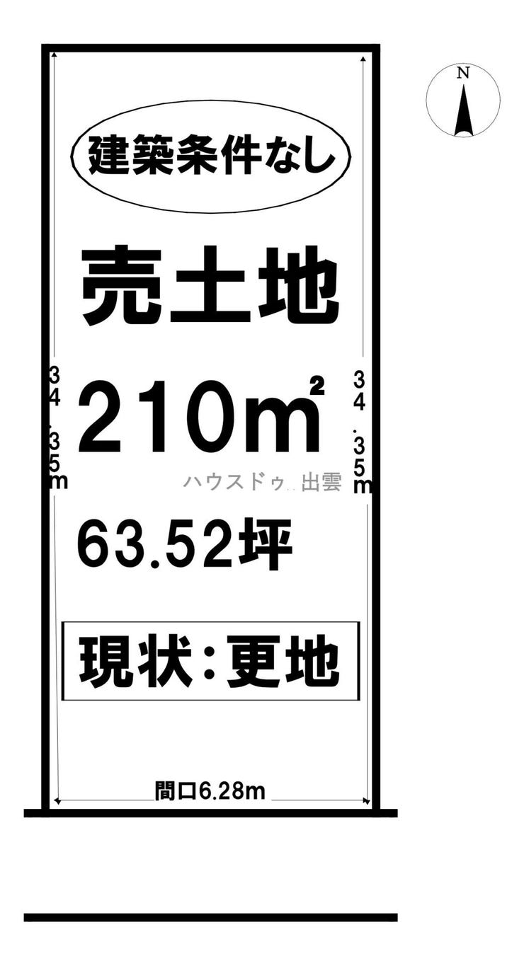 敷地面積63.52坪!建築条件なし!お問い合わせはハウスドゥ出雲0853-31-4010へ!
